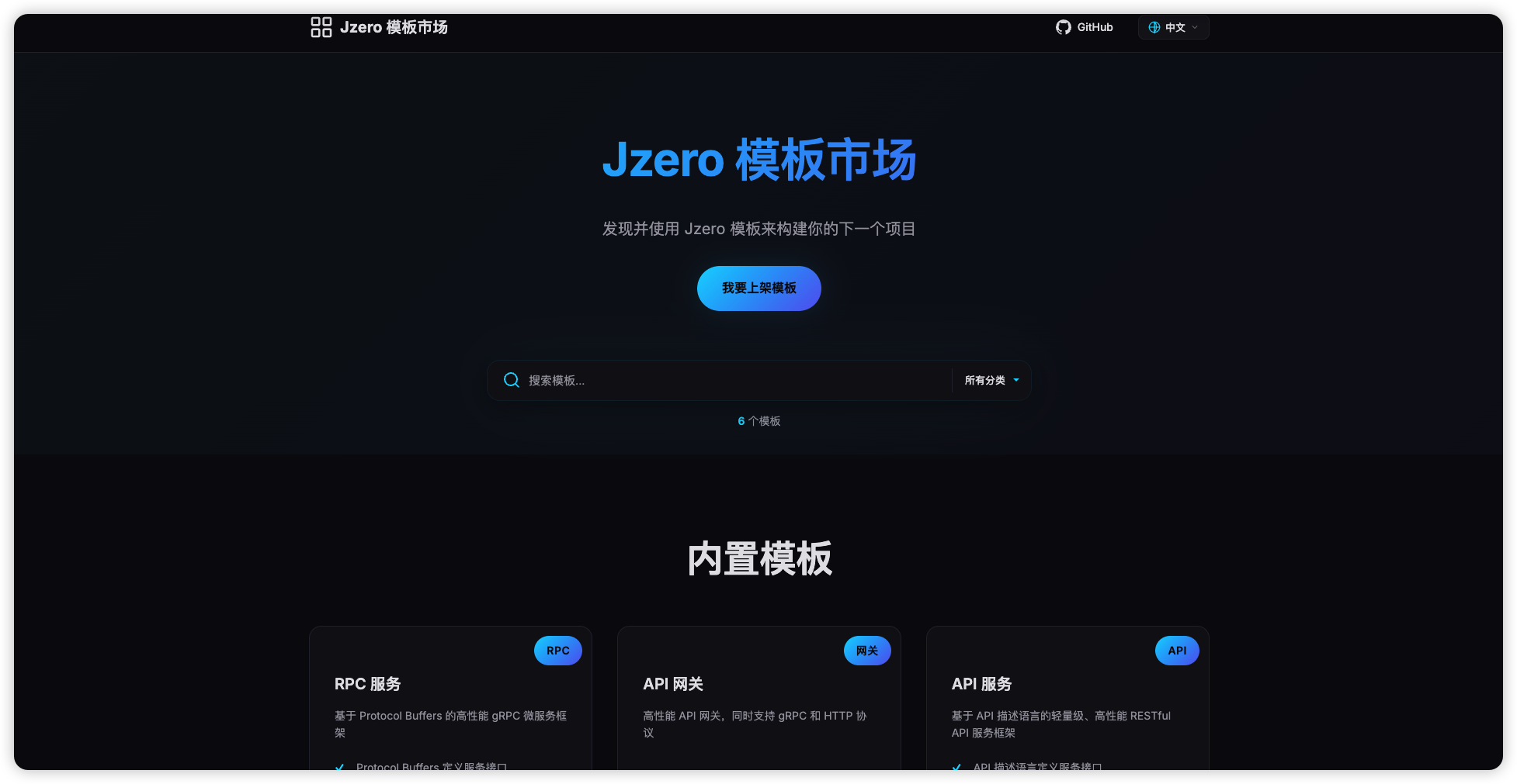 jzero provides a rich collection of official templates and third-party templates to help you quickly build various types of projects: